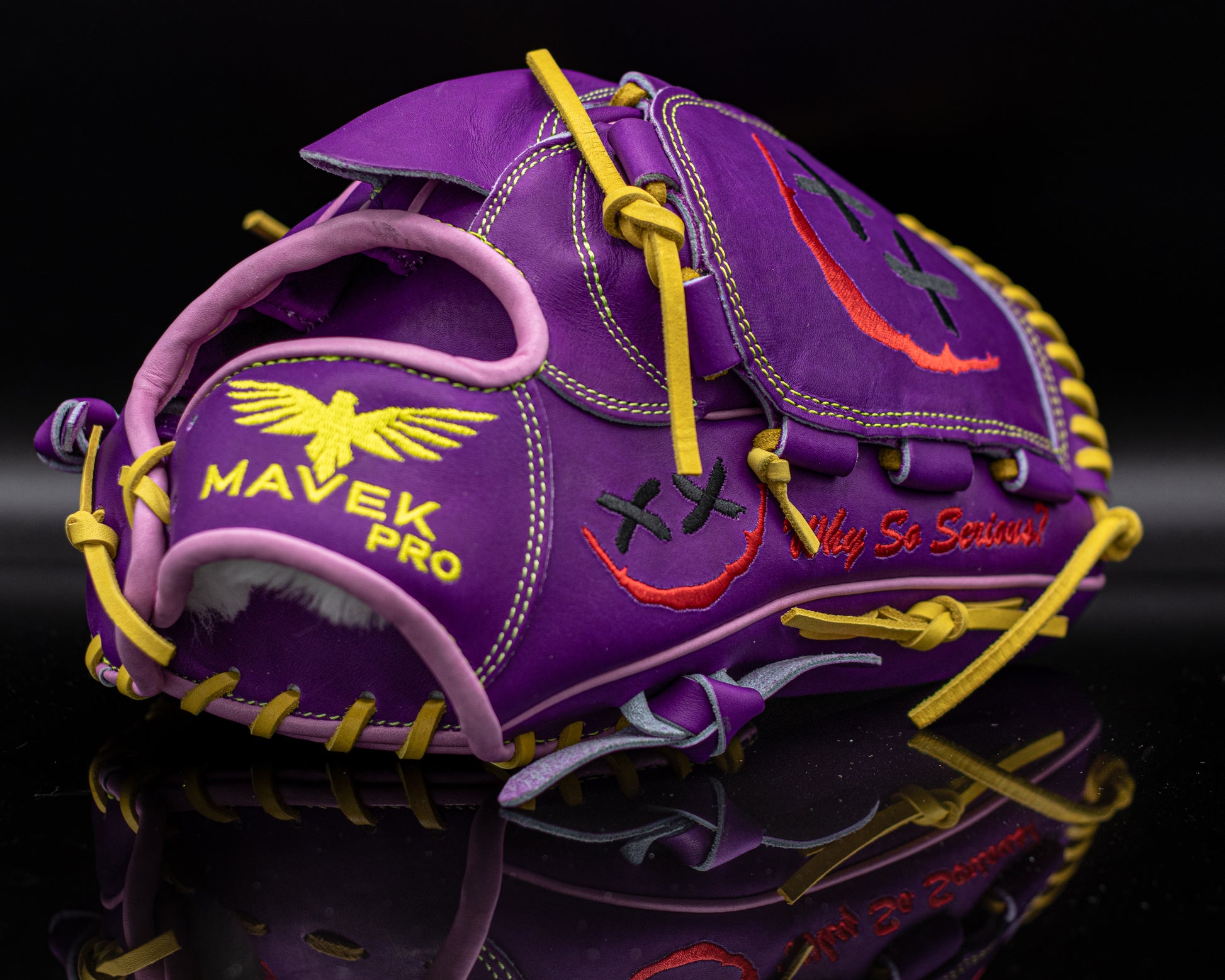 Unleash performance with a bold twist. This limited edition 12” baseball glove, crafted from premium Japan Kip leather, offers unmatched durability, lightweight feel, and buttery-smooth break-in. Designed for serious players and collectors alike, it features a closed web and a striking abstract Joker face etched into the design — a daring statement on and off the field.